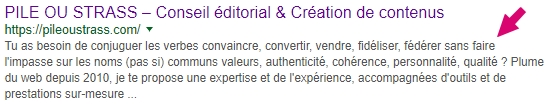 Cette balise s’affiche d’ailleurs dans les moteurs de recherche. Exemple :